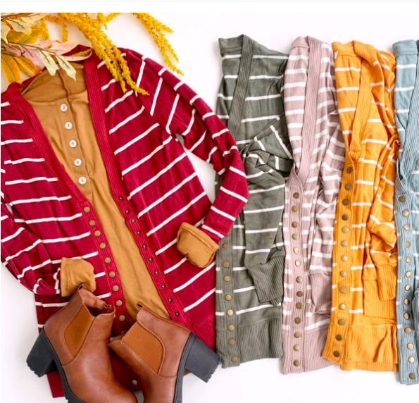 Striped Ribbed Snap Cardigan for $19.99 (Reg. $49.99) *S-XL*