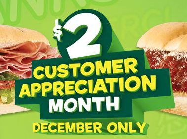 December is customer appreciation month at Subway and they are rewarding customers with a great deal: