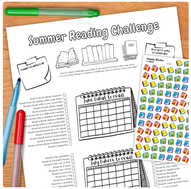 Keep the kid excited about reading over the summer! This comes with 100 stickers, too. Fill in the blank for your summer reading goal, and include a plan to celebrate once they accomplish their goal.