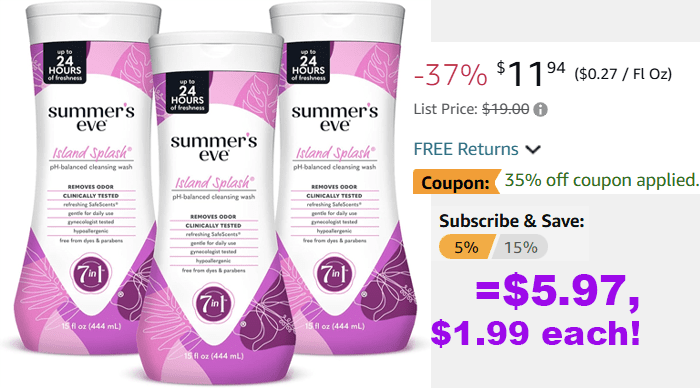 Summer’s Eve Feminine Body Wash, 3-Pack for $11.94 (Reg $19)