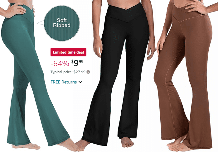 Sunzel Flared Crossover Waist Ribbed Leggings for $9.99 (Reg $27.99)!