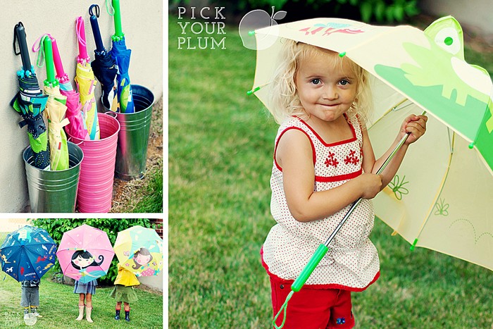The “Juicy” Details: Umbrellas are made of 100% high quality polyester. All “kid” style umbrellas have a fun pop up element and are 25″ in diameter and 23″ long. The “grown up” style (More Dots, Less Polka) is 35″ in diameter and 25″ long. All umbrellas have a built-in safety feature that prevents fingers getting pinched when opening and closing! {yippee}