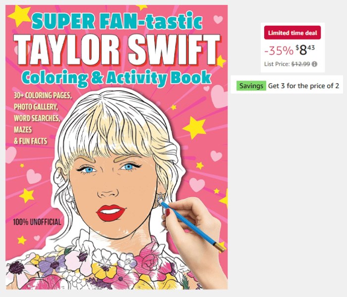 Taylor Swift fans of all ages will love this activity book! Plus it’s on Amazon’s Buy 2 Get 1 Free sale!