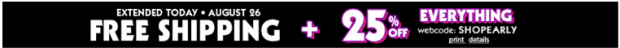Head on over HERE to shop! Not only will you get Free Shipping but you will also get 25% off EVERYTHING when you use code SHOPEARLY at checkout!