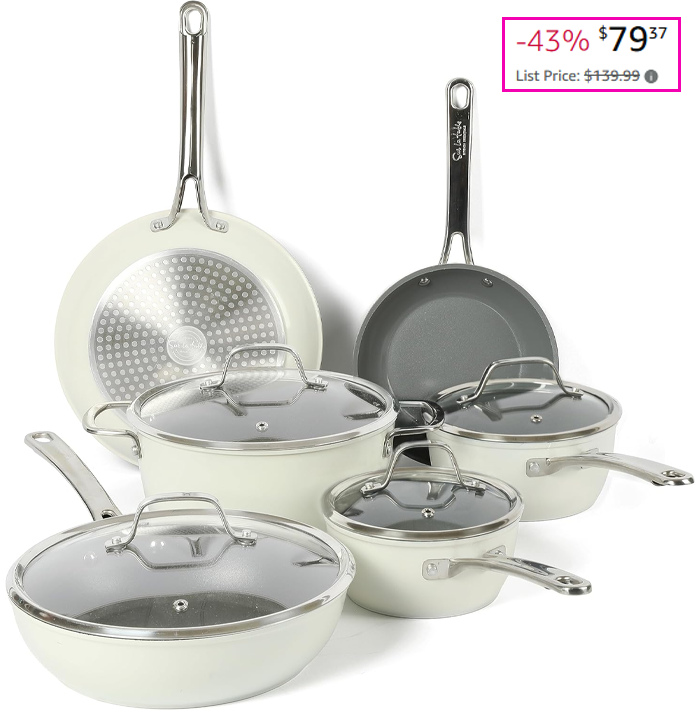 Sur La Table Kitchen Essentials 10 Piece Titanium Ceramic Nonstick Cookware Pots and Pans Set for $79.37 (Reg $139.99)!