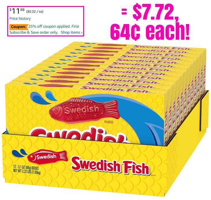 Swedish Fish, 12 Pack of 3.1 oz Boxes for $11.88