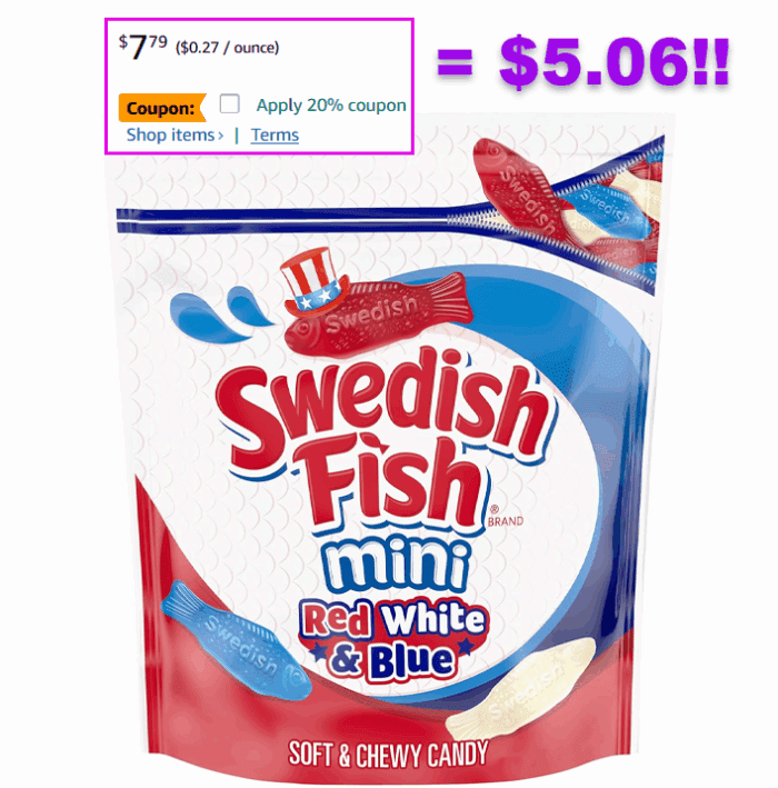 SWEDISH FISH Mini Red, White & Blue Soft & Chewy Candy, 1.8 lb for $5.12 (Reg $7.79)!