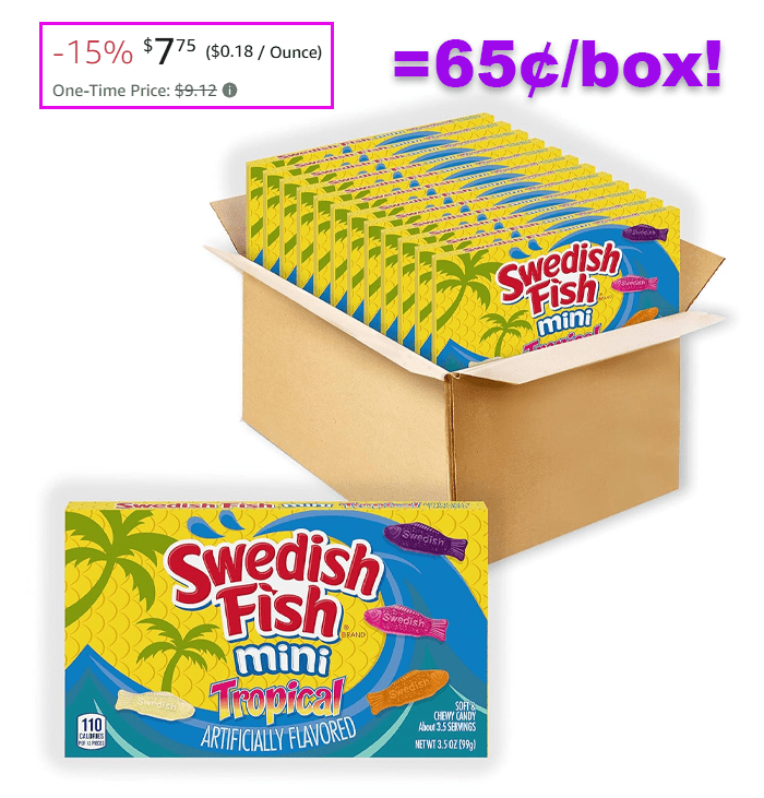 SWEDISH FISH Mini Tropical Soft & Chewy Candy, 12 – 3.5 oz Boxes for $9.12