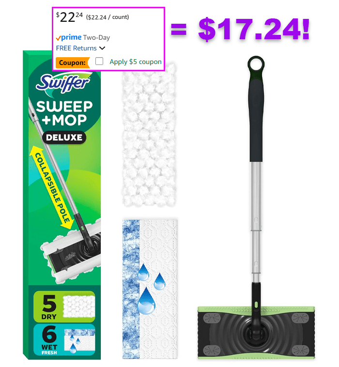 Swiffer Sweep & Mop Deluxe 2-in-1 Floor Mopping and Sweeping Kit for $17.24 (Reg $22.24)!