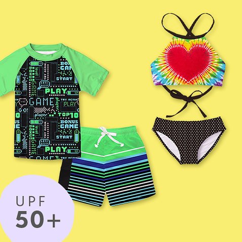 Dress kiddos for fun and peace of mind on beach days with this collection of charming, UPF 50+ swim styles.