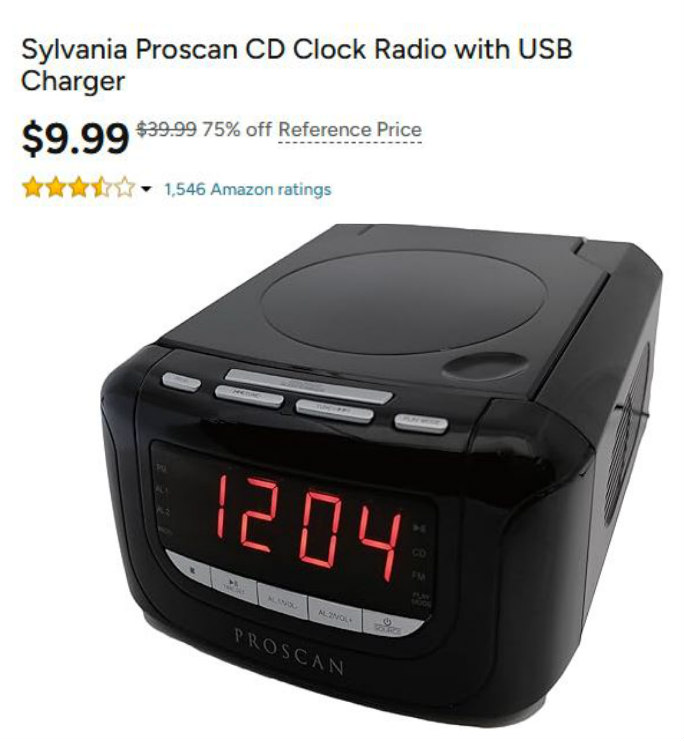 Sylvania Proscan CD Clock Radio with USB Charger $9.99 (reg $39.99)