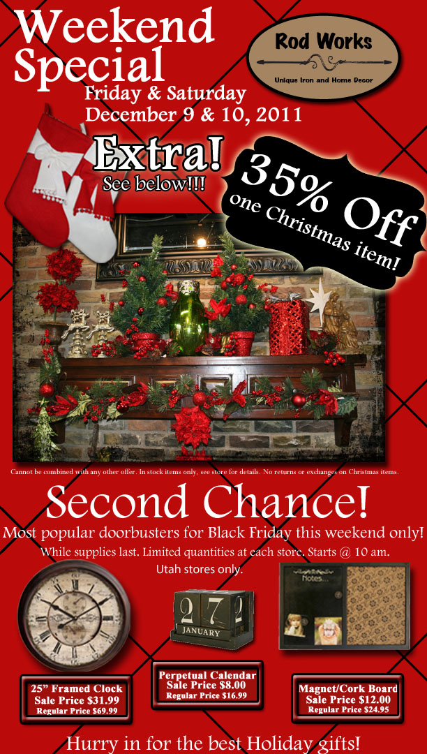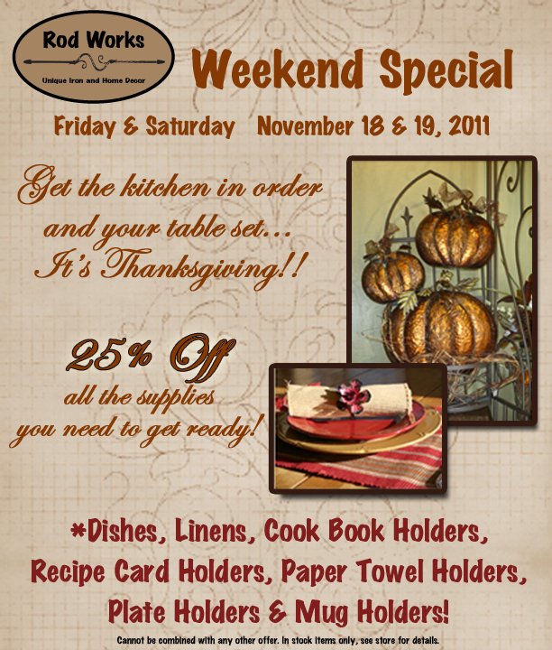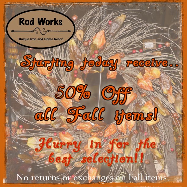 Rod Works 11/11 & 11/12 Fall Items 30% Off Select Christmas Items 40% Off