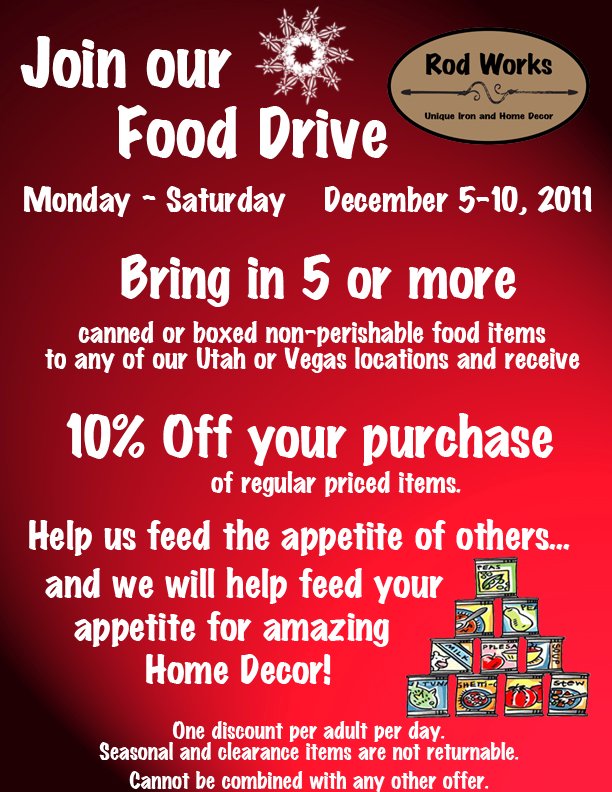 Rod Works Food Drive Save 10% With A Donation Vegas & Utah
