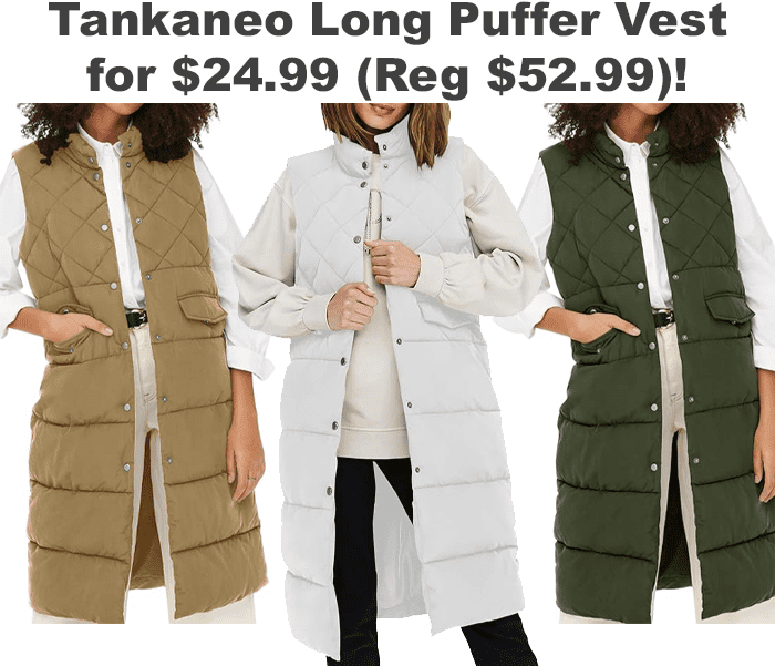 Tankaneo Long Puffer Vest for $49.99 (Reg $52.99)!
