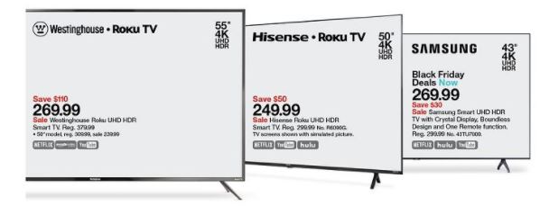 Westinghouse 55″ 4K Ultra HD Roku Smart TV with HDR $269.99 (reg $379.99)