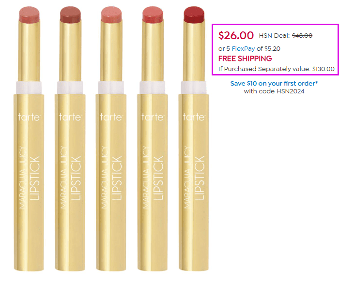 tarte 5-piece Maracuja Juicy Lipstick Set for $26 + Free Shipping (Valued at $130)!