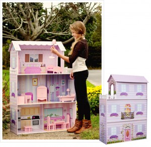 Any girl would love this Teamson Eco-Friendly Fancy Doll Dreamhouse! It comes with 14 hand-painted furniture pieces. I like that there are no walls in the house, but things are just separated by the images on the back. The little balcony is really cute, too.