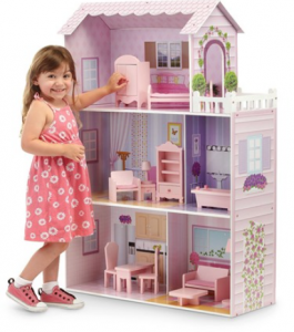- Your child will love this mansion of a wooden dollhouse that comes with furnishings