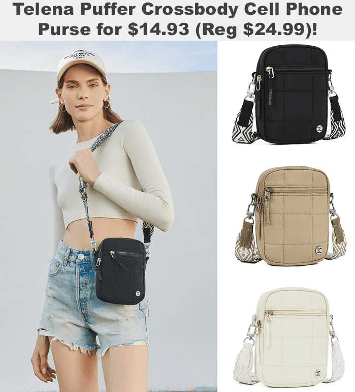 Telena Puffer Crossbody Cell Phone Purse for $17.99 (Reg $24.99)