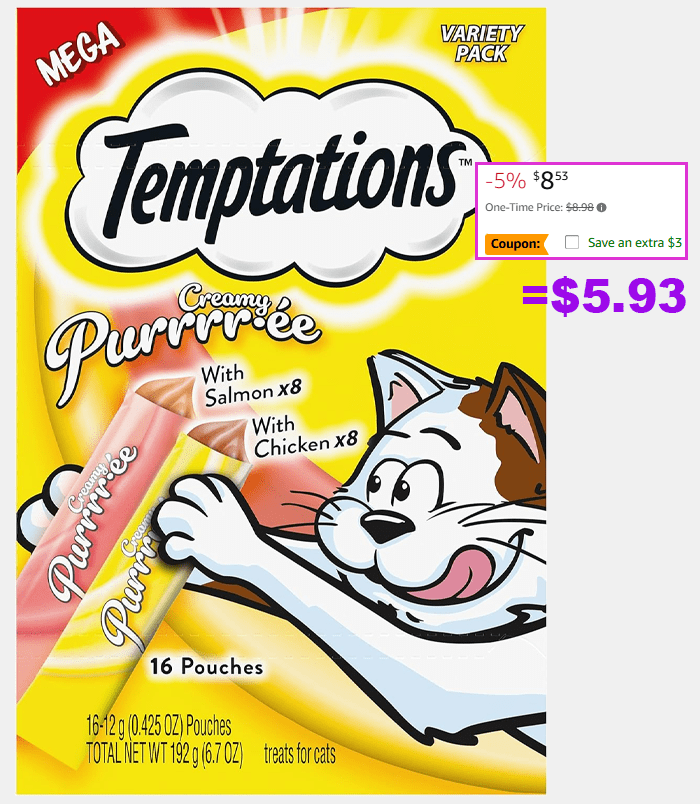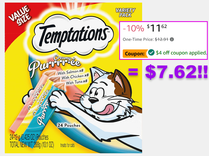 Temptations Creamy Puree with Chicken, Salmon, and Tuna Variety Pack, 24-Count for $12.91