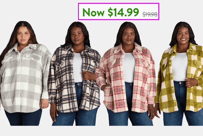 Terra & Sky Women’s Plus Size Faux Shearling Shacket for $14.99 (Reg $19.98)!
