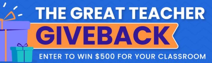 Nominate a teacher you know for a chance to win one of four $500 prizes to help them set up their classroom from Savings.com’s Great Teacher Giveback. Or, if you are a teacher, you can nominate yourself. Nominations are due by August 19th.