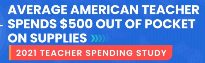 - The average amount teachers spend without getting reimbursed is $511. One in four teachers spends over $750 on supplies.