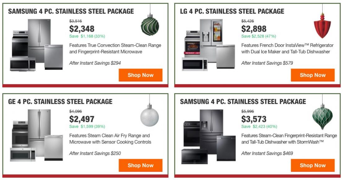 - $175 off the purchase of 4 appliances ($43.75 off of each)