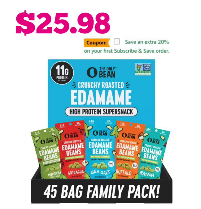 45-Pack The Only Bean High Protein Snacks, Edamame Beans Snack, Variety Pack $25.98 (Reg $39.97)!