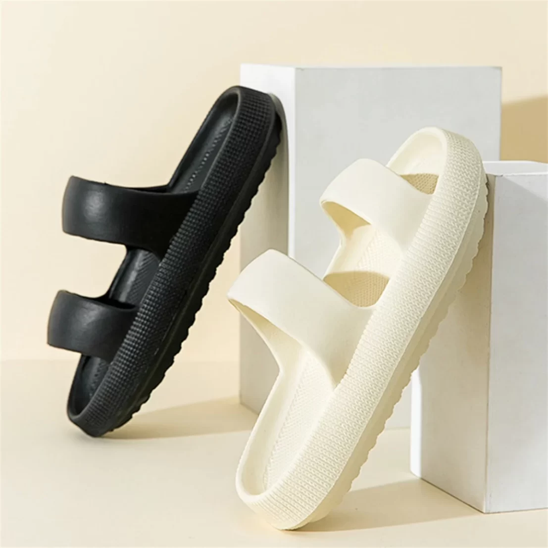 The Pillow Slides use EVA soles and protection design to make you feel like stepping on the cloud. Forward and backward shock absorption, reduces foot damage.