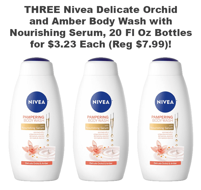 Nivea Delicate Orchid and Amber Body Wash with Nourishing Serum, 20 Fl Oz Bottles for $6 (Reg $7.99)