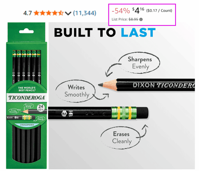 Ticonderoga Wood-Cased Pencils for $4.38 (Reg $8.95)
