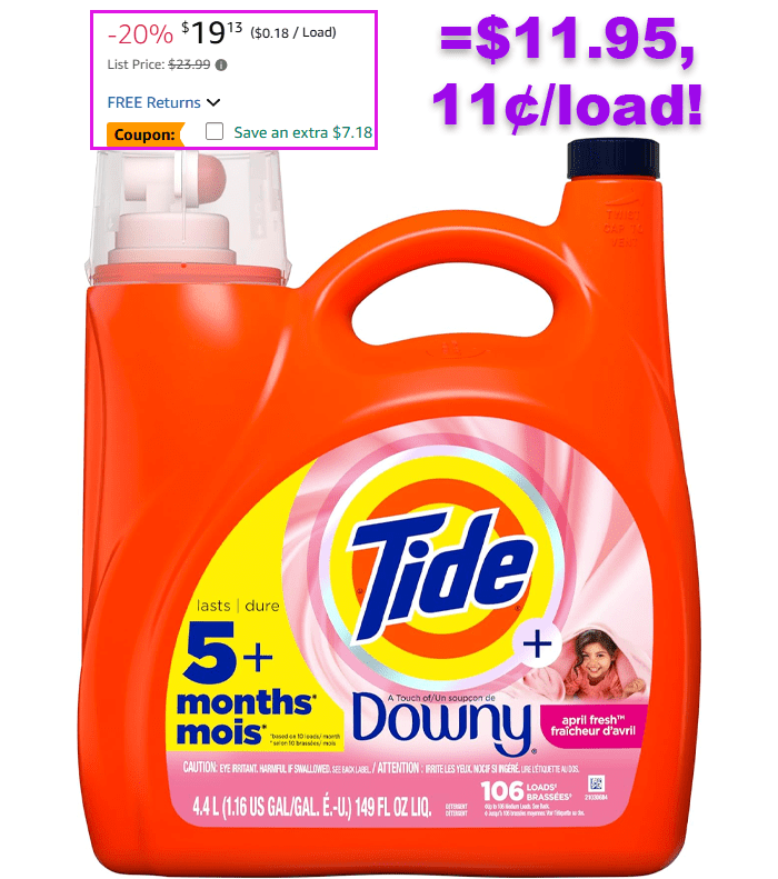 Tide Plus A Touch of Downy Liquid Laundry Detergent, April Fresh, 149 fl oz, 106 loads, HE Compatible for $22.51 (Reg $23.99)