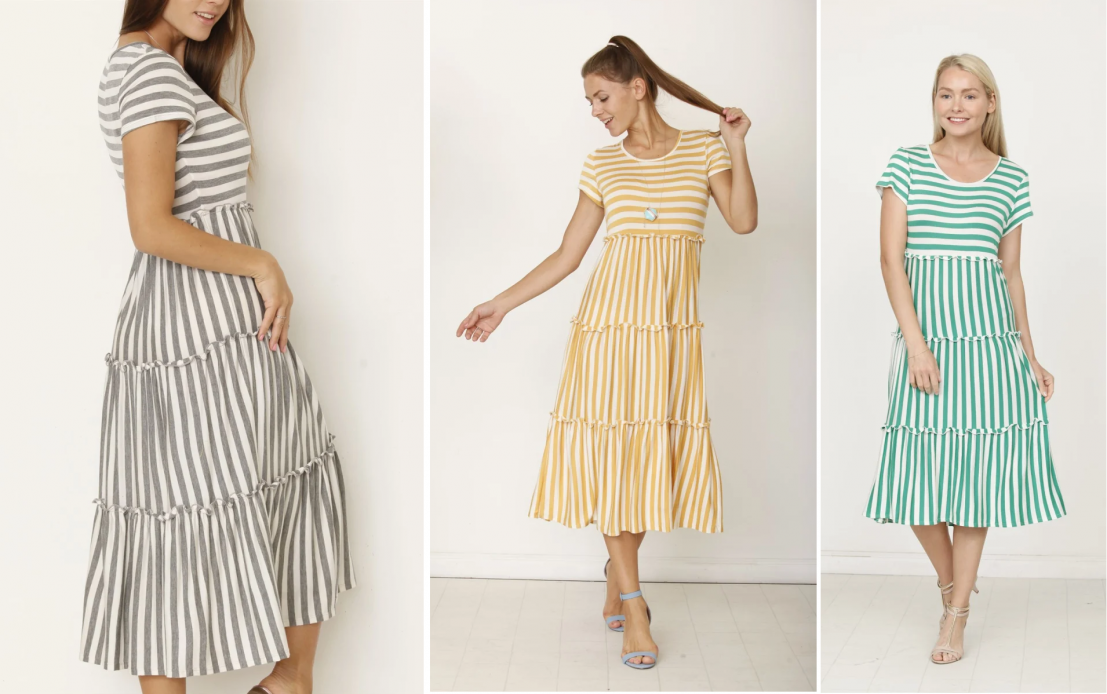 Tiered Stripe Midi Dress for $13.99 Shipped (Reg $64.99)!