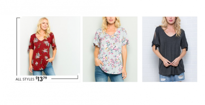 Tie-Sleeve Tops S-3X $13.79 (reg $45)