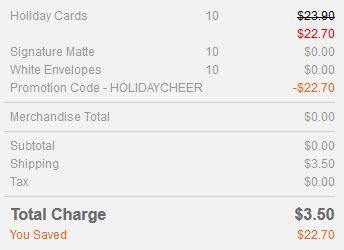 Yahoo! Another hot deal on holiday cards! Get 10 FREE holiday cards from Tiny Prints through November 13th. Shipping charges do still apply, but they start at just $3.50 and 10 photo cards and envelopes for only $3.50 is a great deal!