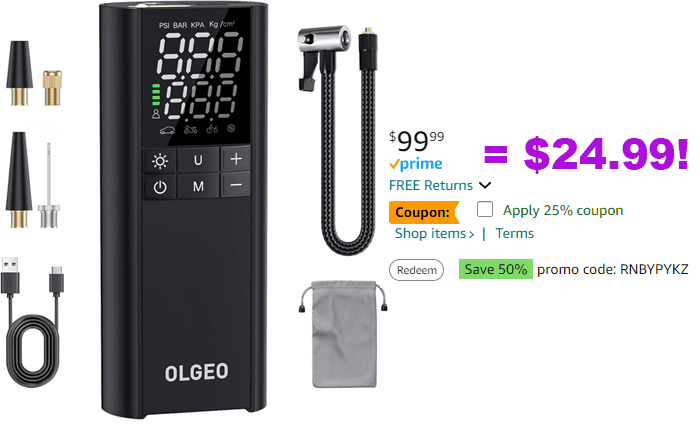 Tire Inflator Portable Air Compressor, 170PSI & 22000mAh Cordless Air Pump for $99.99