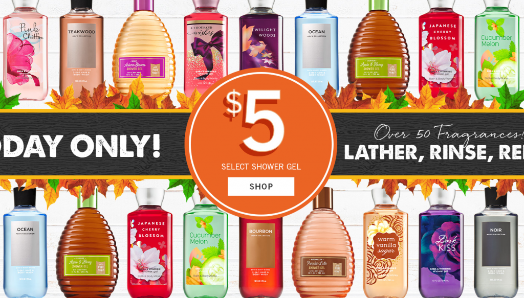 Today only, Bath & Body Works has their Shower Gels on sale for $5 (regularly $12.50 – $18.50)!