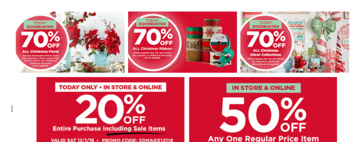 Today only December 1st, Michael’s is offering 20% off your entire purchase, including sale items! Use code 20MAKE12118 o get this deal! You can also use code 55SAVE112518 50% off any one regular price item.