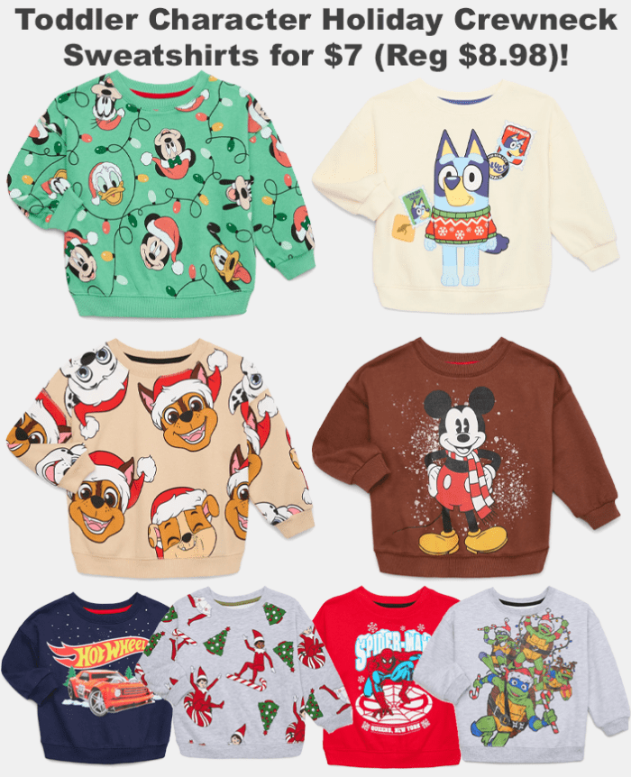 Toddler Character Holiday Crewneck Sweatshirts for $7 (Reg $8.98)!