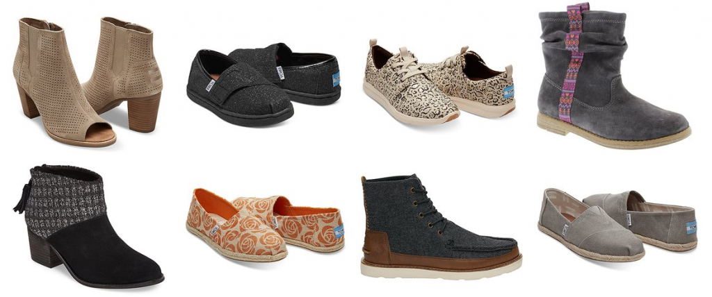 Score! Head over to zulily, where they offering Toms Shoes at up to 45% off, and there are styles for the entire family! Choose a boot for winter, or a flat for fall! There are even sandals you can save till next spring. Woohoo!