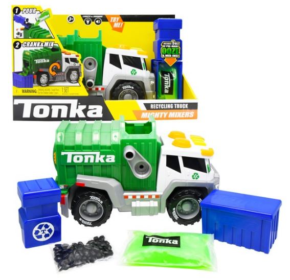 - The Tonka Mighty Mixer Garbage/Recycling Truck combines classic imaginative vehicle play and Mix & Mash compound play!