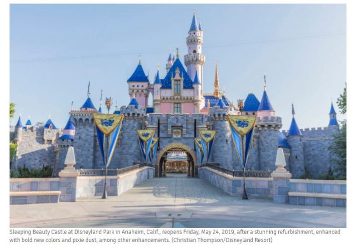 Did you hear that Sleeping Beauty’s Castle was undergoing refurbishment? It closed for about four months, using some one-of-a-kind murals as a placeholder for guests visiting Disneyland. The exterior received a color refresh, making a beautiful new backdrop for your Disneyland photos. The pinks, blues and golds definitely help the castle stand out as it never did before.