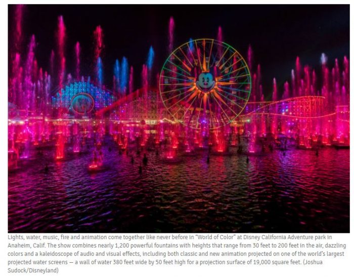 This dazzling water, projection and light show has returned to the Resort as of 2019. This display of water, lights, pyrotechnics and music takes place in Paradise Gardens located in Disney California Adventure Park. Scenes from classic and beloved Disney and Pixar films are projected throughout, wowing audiences of all ages.