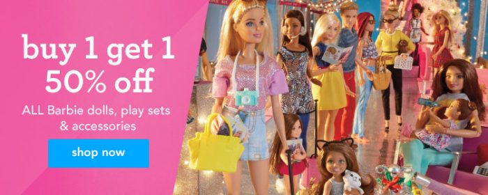 Plus Barbie Dolls & Sets are on sale Buy One Get One 1/2 Off! Fashionista Dolls are on sale for $9.99, so $7.49 after the BOGO sale!