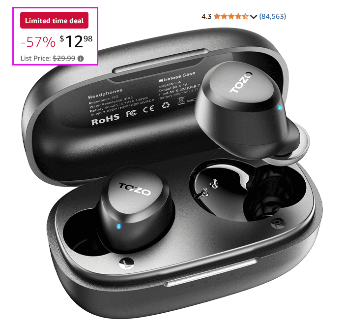 TOZO A1 Mini Wireless Bluetooth Earbuds with Microphone & Premium Sound for $12.98 (Reg $29.99)!
