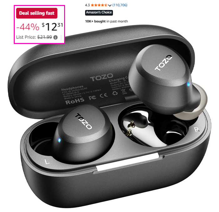 TOZO A1 Wireless Earbuds for $12.31 (Reg $21.99)!