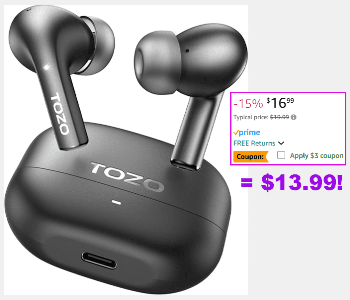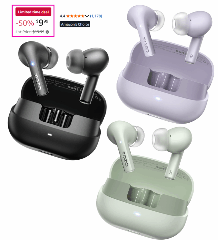 TOZO E2 Wireless Earbuds for $9.99 (Reg $19.99)!