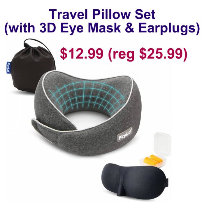 Travel Pillow Set (with 3D Eye Mask & Earplugs) $25.99