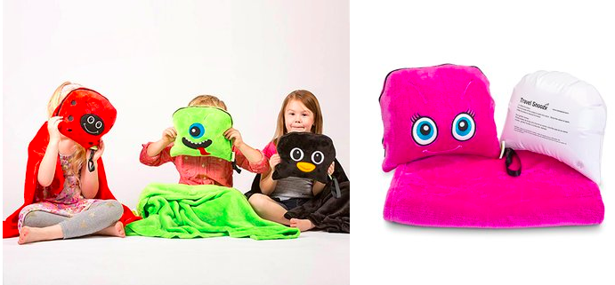 Let your little one cozy up on long car rides or plane flights with this adorable travel set. A soft-touch blanket and inflatable pillow offers unbeatable comfort.